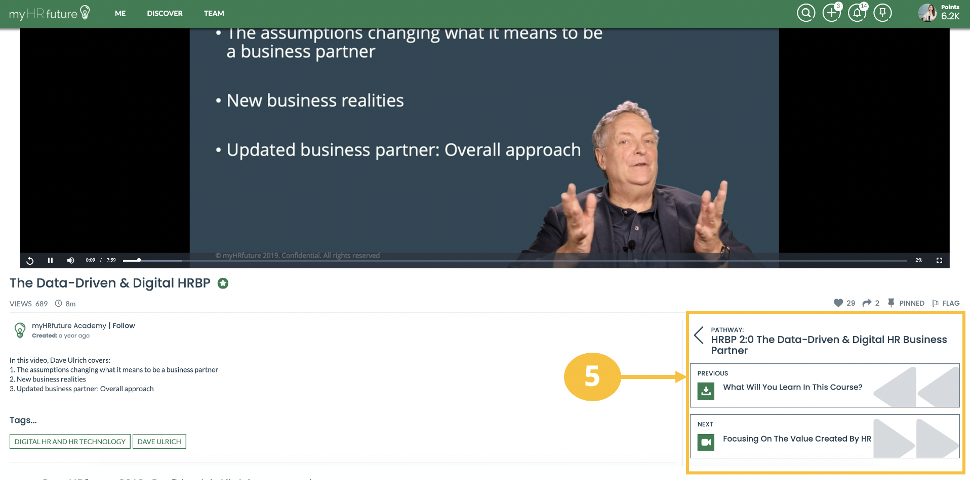 Once you've started a Skill-booster training course or Learning Pathway you enjoy, you can navigate between videos using the directional arrows (5) just below the video. Simply scroll down your page slightly to locate them